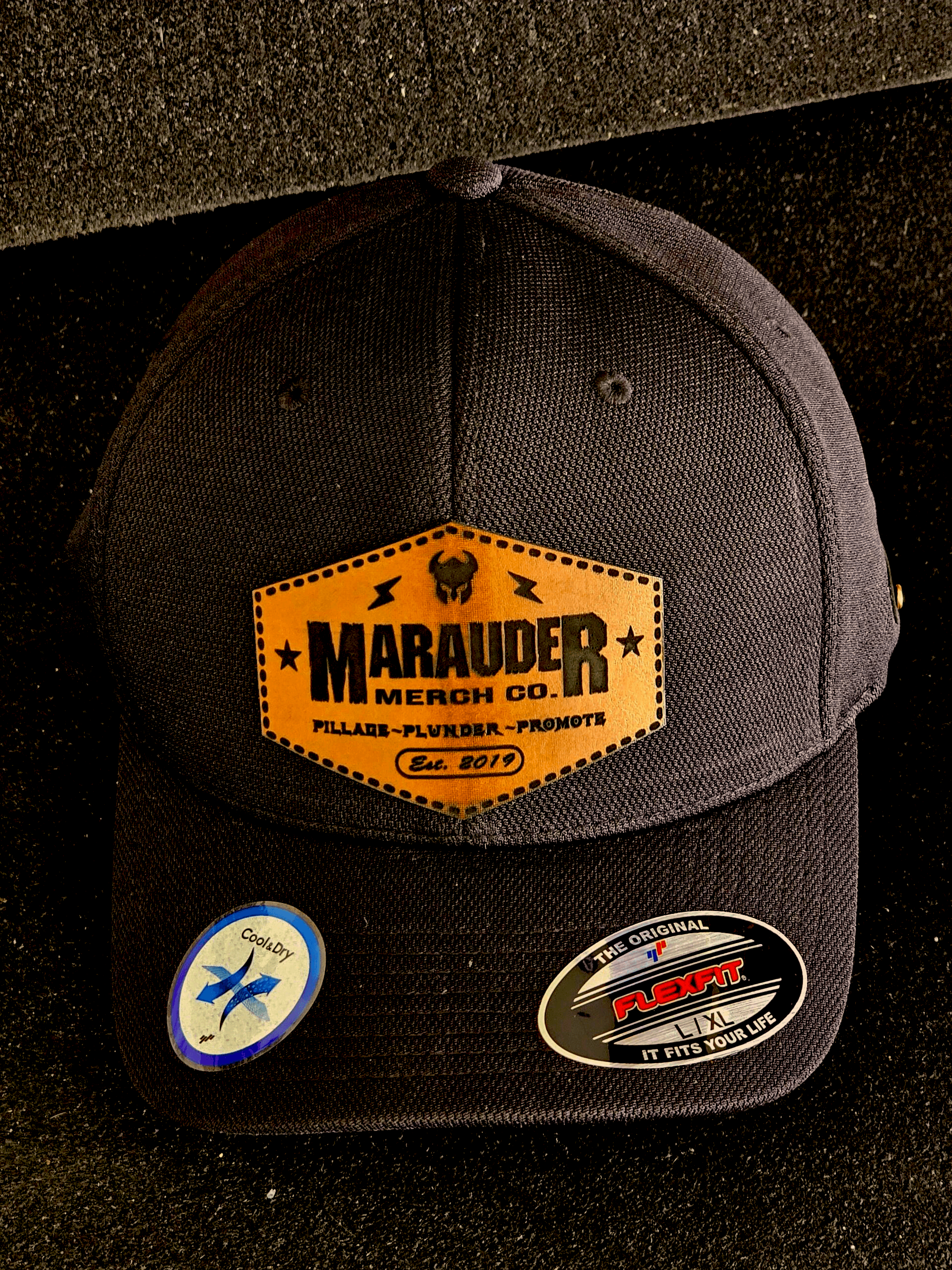 Branded Leather Patch Hat is handmade using Flexfit Cool & Dry Hat and Laser Engraved and Cut Patch.